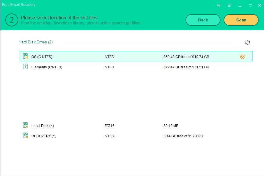 Step 1. Install and launch Free Email Recovery. Click "Start" button.